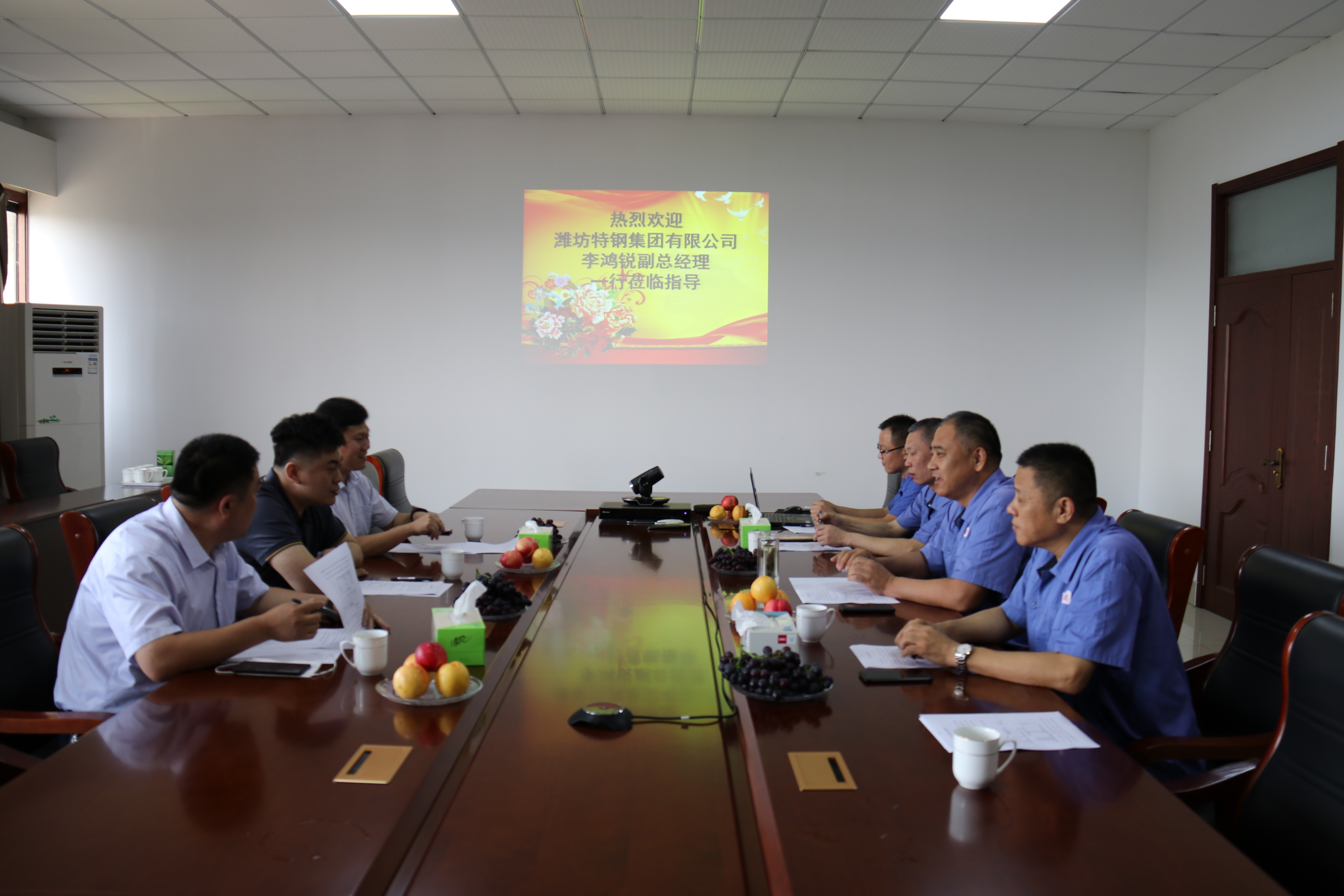 7月20日,濰坊特鋼集團(tuán)公司副總經(jīng)理李鴻銳一行三人到振興焦化公司調(diào)研交流,振興焦化公司總經(jīng)理?xiàng)蠲髡?、副總?jīng)理秦宏偉等領(lǐng)導(dǎo)熱情接待。