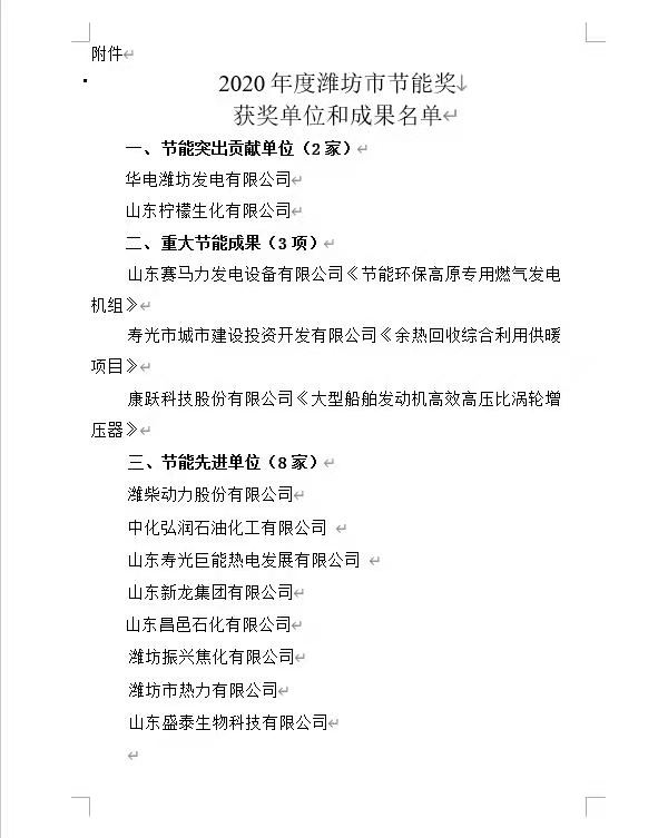 近日,在濰坊市發(fā)展改革委員會組織的節(jié)能先進單位評選中,振興焦化公司榮獲2020年度“濰坊市節(jié)能先進單位”稱號,并獲獎金5萬元。