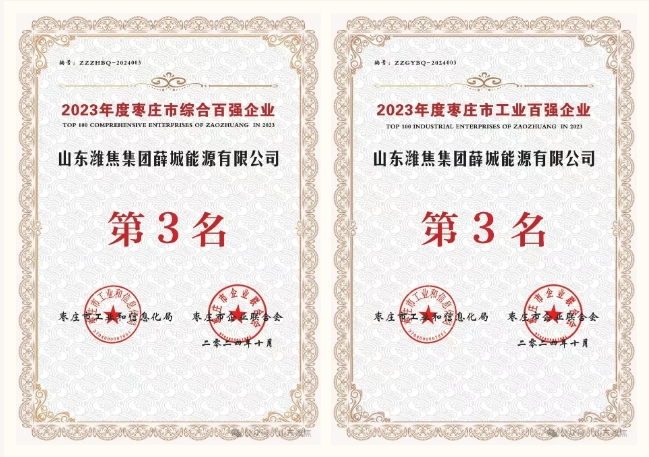 【喜訊】薛城能源公司、棗莊杰富意公司雙獲2023年度棗莊市“綜合百強企業(yè)”和“工業(yè)百強企業(yè)”稱號